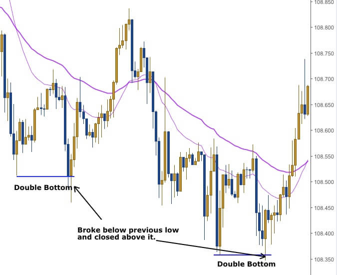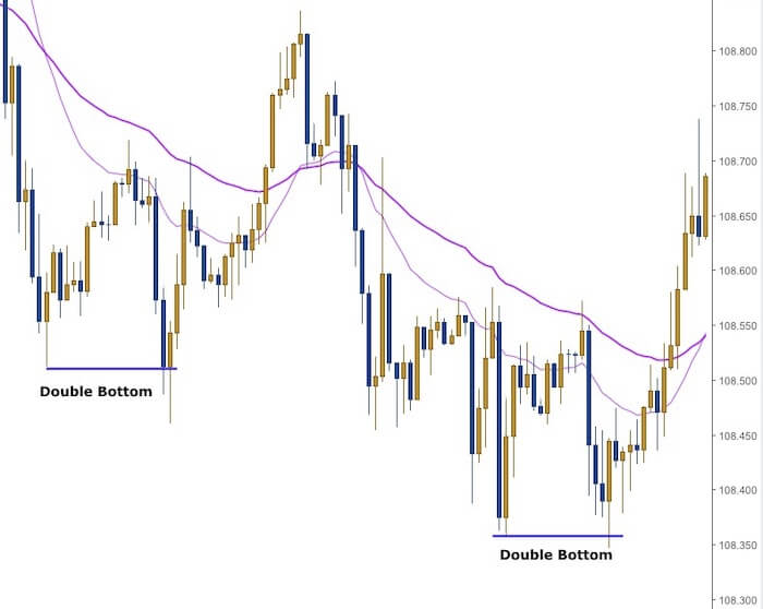 The double bottom forms when the market is finding it difficult to make a significantly lower low and is a sign that the bulls are taking over.