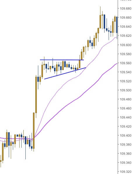 That means we only look for these patterns when the 20 EMA is above the 50 EMA, and the market is forming higher highs and higher lows.