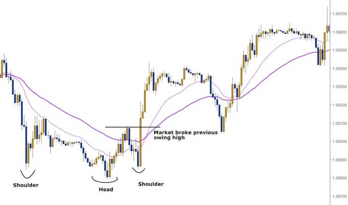 In the chart above, you can see that the shoulders do not go lower than the head.