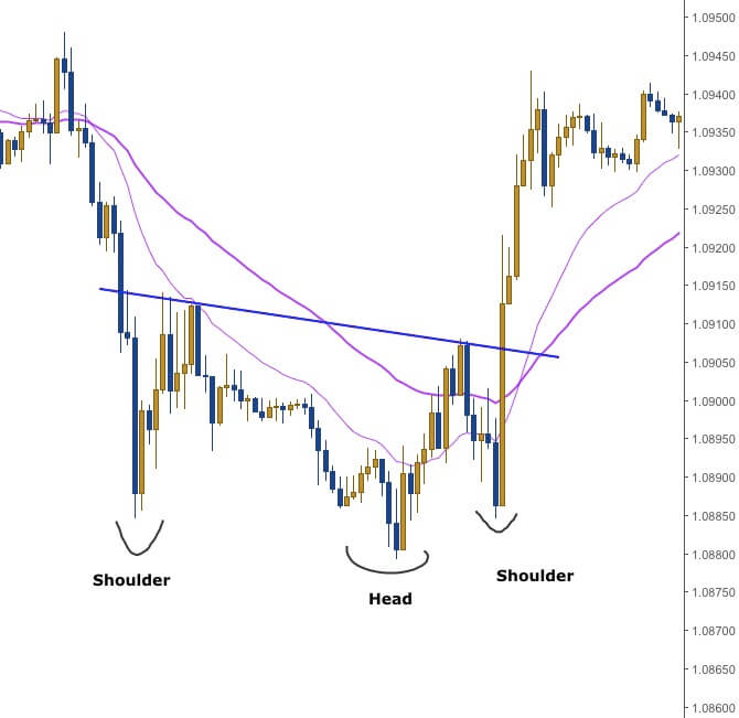 The inverted head and shoulders pattern is similar to the double bottom except that it has 3 “bottoms”.