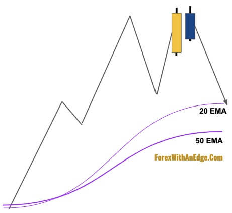 And what I’m looking for are the Dark Cloud Cover patterns that form on either of these EMAs like this: