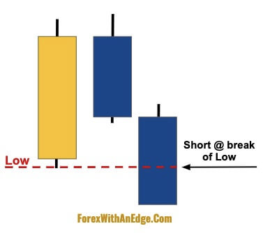 The second entry method is to enter into a trade when the market breaks below the low of the first bar in the formation.