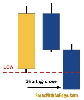 3) Entry Method #3: At the Close Below the First Bar’s Low